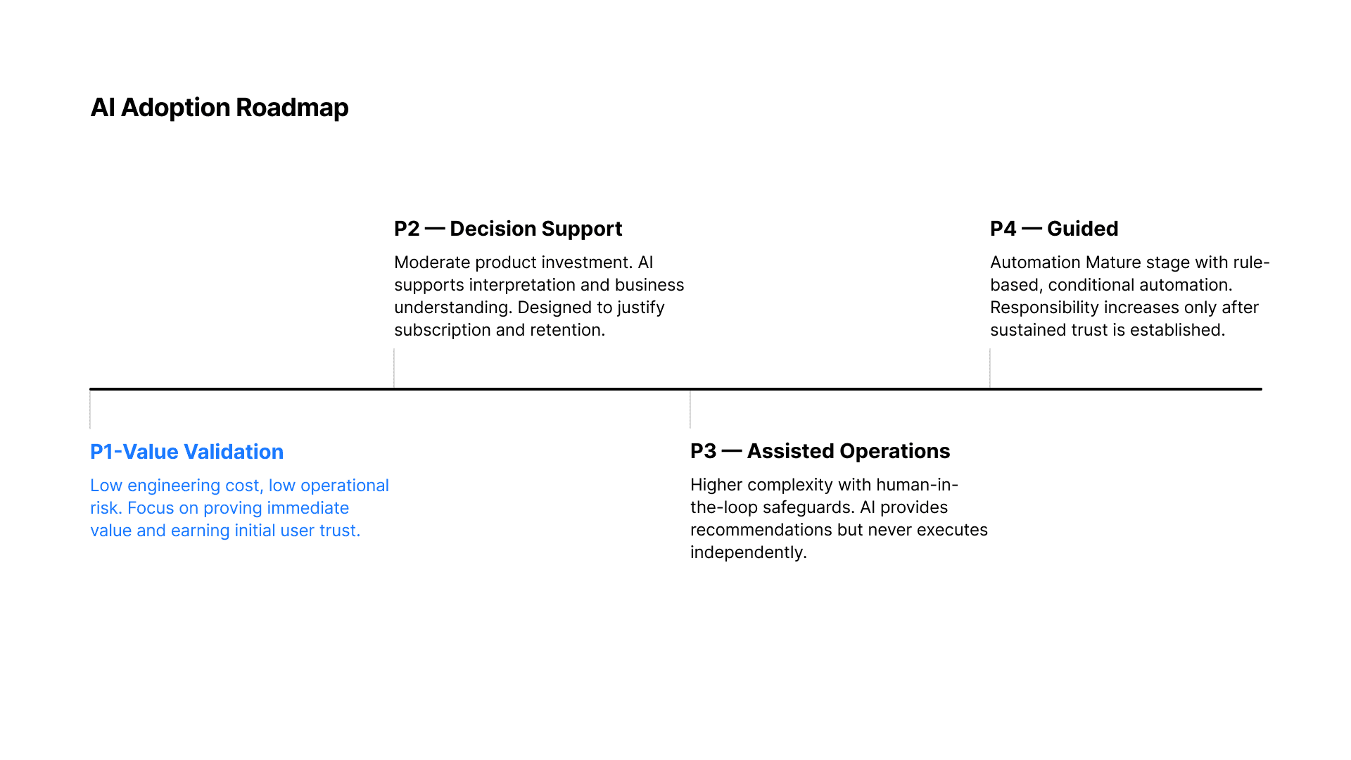 To keep the trust cost low in Phase 1, we needed a domain where AI value would be immediate and easy to verify.