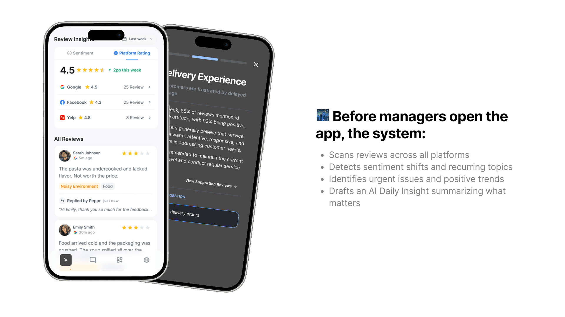 Reviews are frequent, time-sensitive, and written in natural language. Managers can quickly tell whether an AI-generated response is helpful or not.