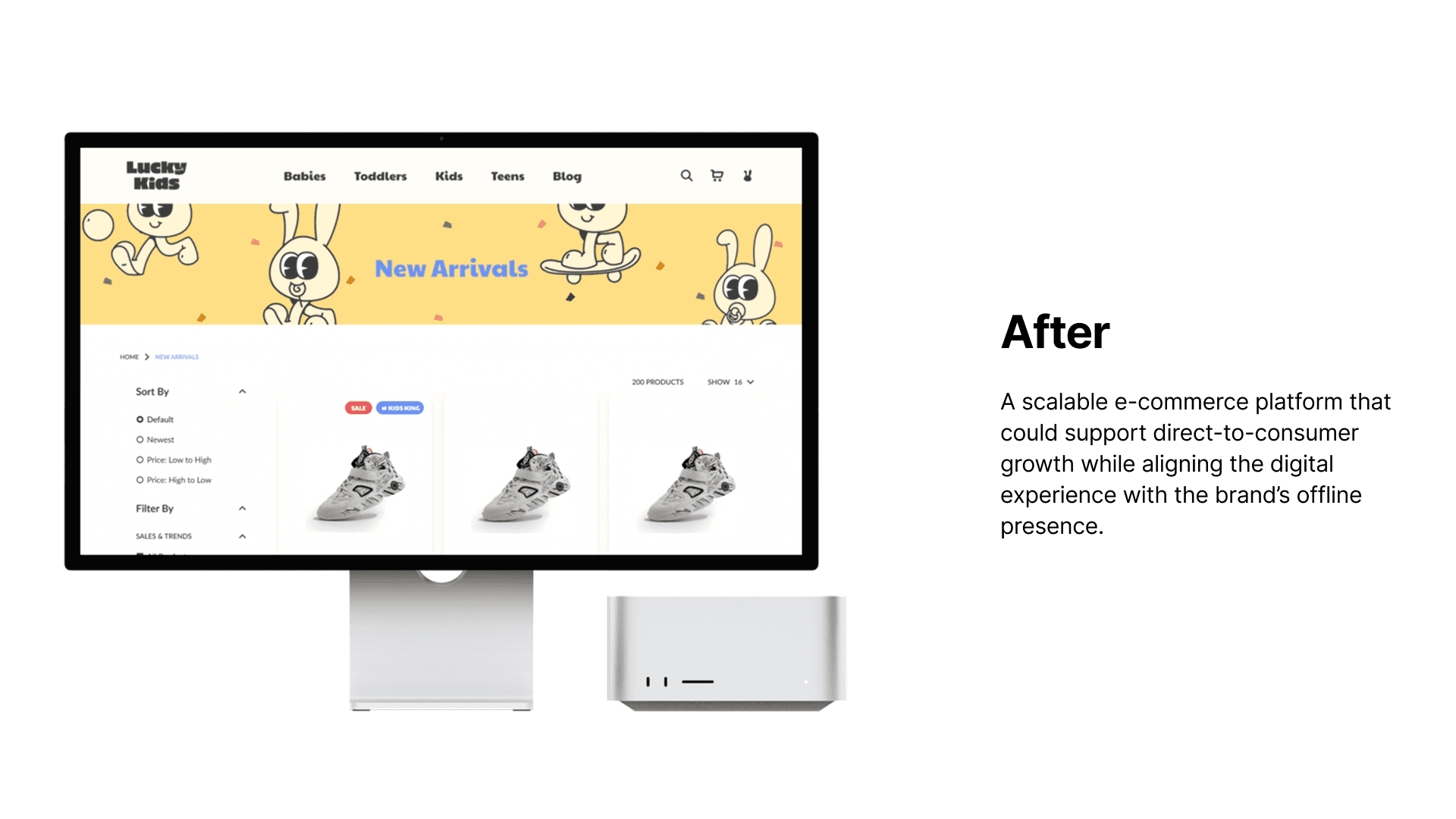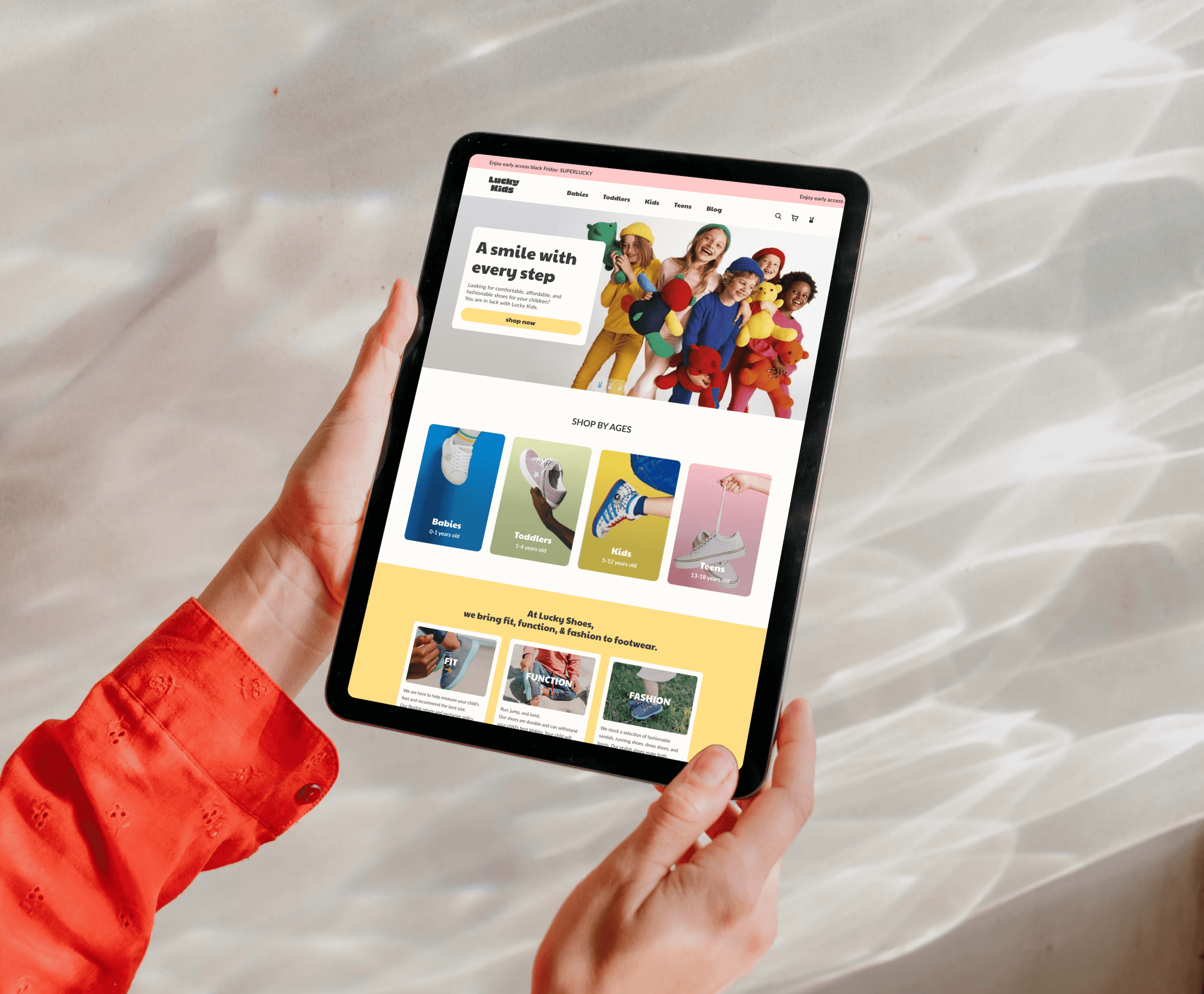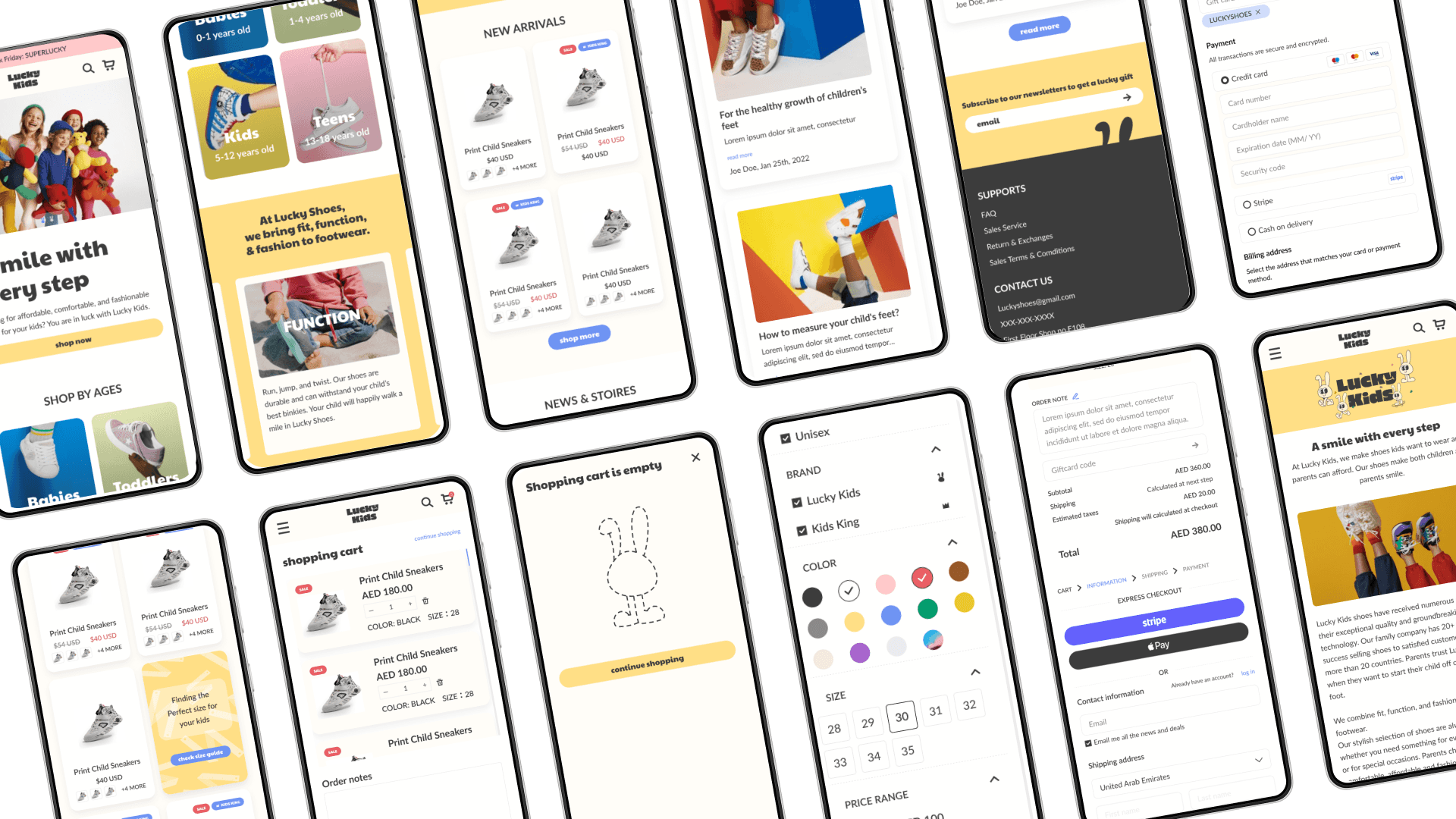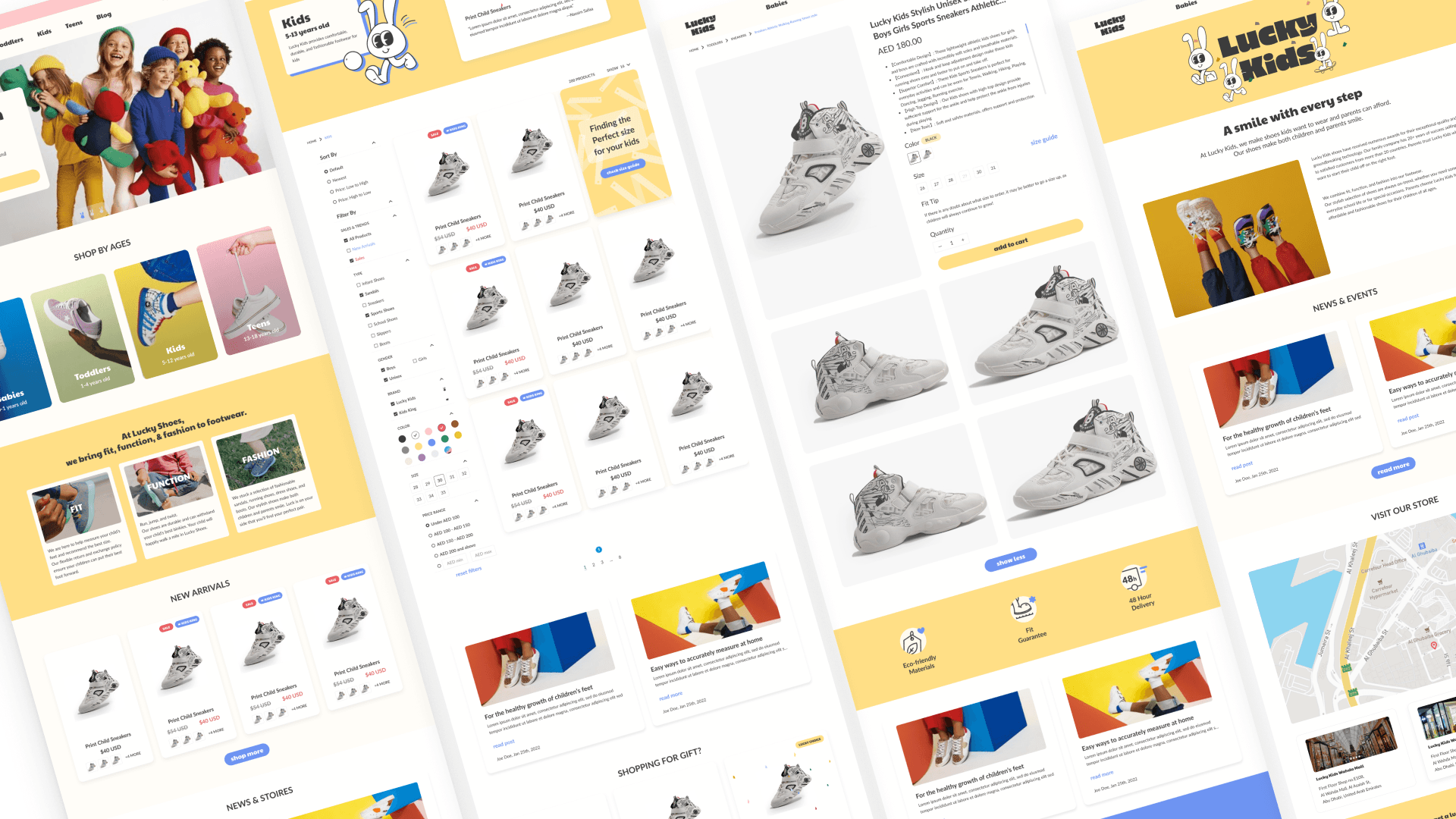 Lucky Kids is a 20+ year-old children’s footwear brand based in Dubai, operating three successful retail stores. However, its online sales relied heavily on Amazon, with no owned e-commerce infrastructure or cohesive digital brand presence. The existing website lacked transactional capabilities, had fragmented information architecture, and was not built to support SKU expansion, promotions, or customer data ownership.