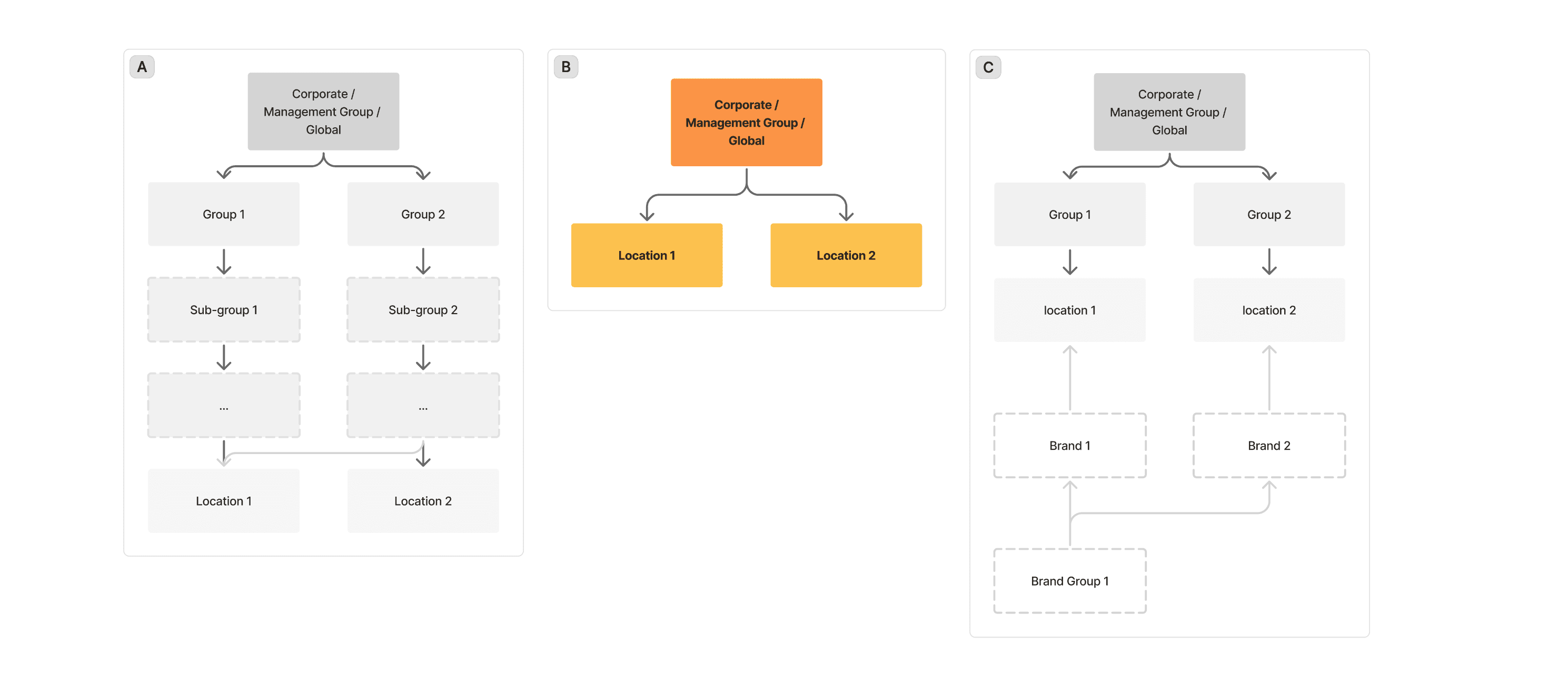 Most of our customers didn’t start as chains. They comfortably operated one to three locations using a flat, location-by-location setup.
