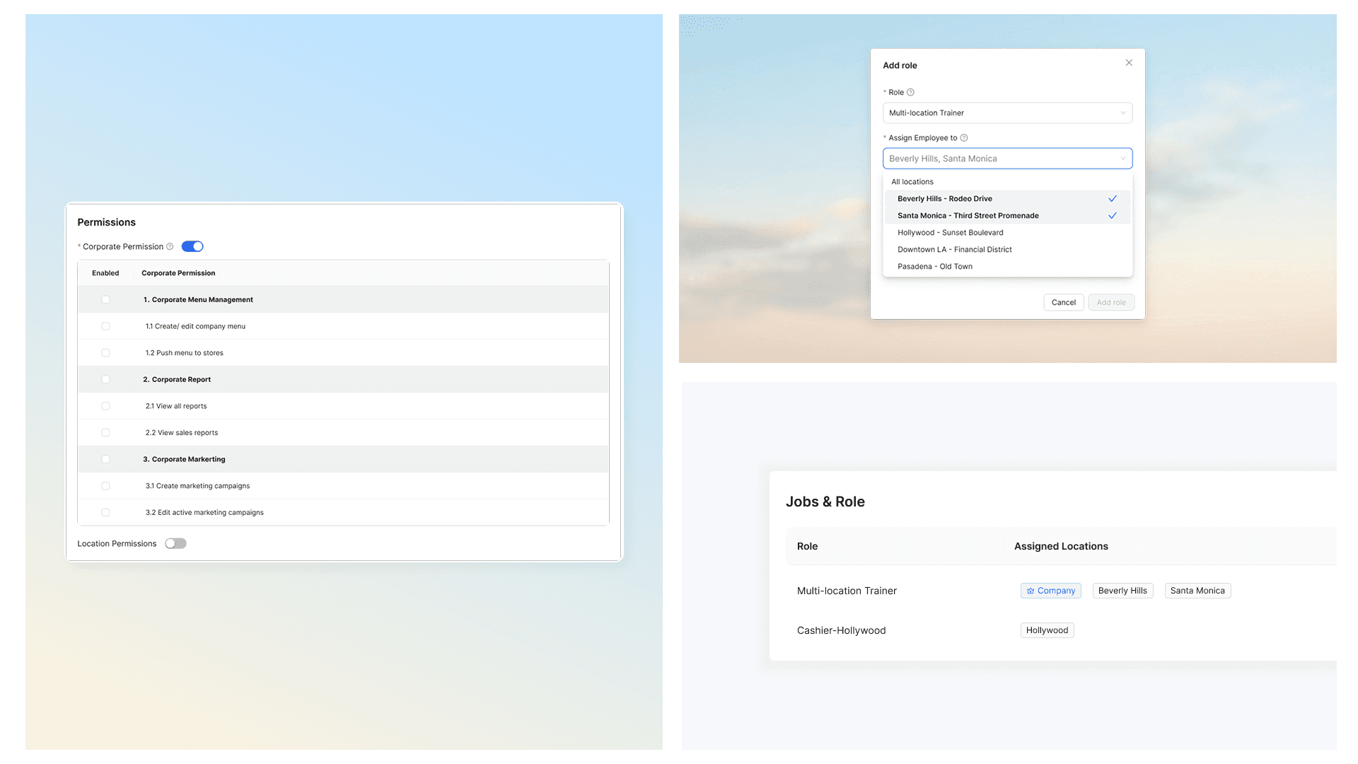 For example, a regional manager may be allowed to edit menus, but only within a predefined set of locations rather than globally.