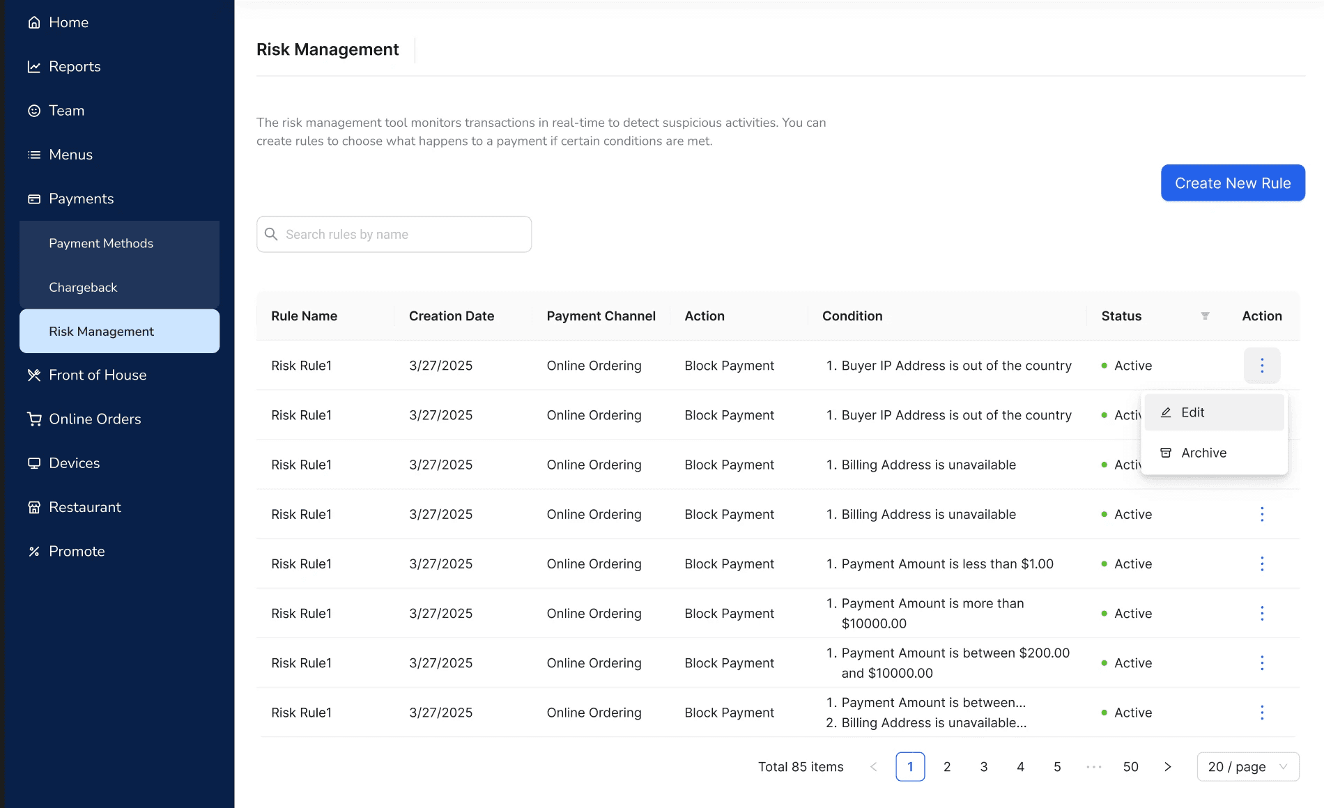 We introduced a configurable risk engine that allows merchants to control how suspicious payments are handled, merchants can create rules to control how suspicious payments are handled in real time.