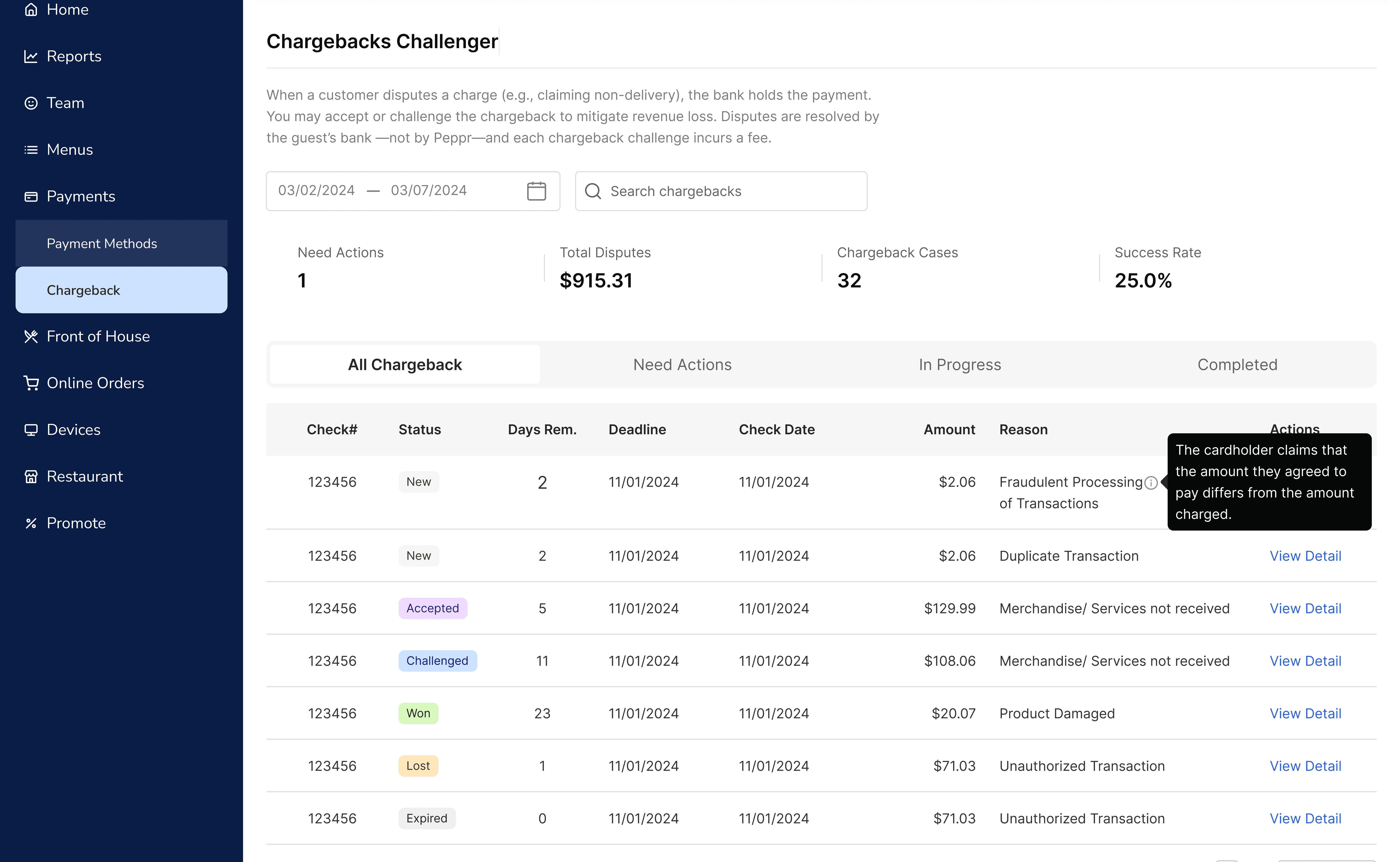 Merchants can now quickly see which disputes need attention, what stage they are in, and what action to take next.